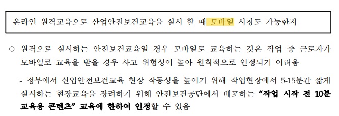 | 제목 산업안전보건교육 모바일 수강불가 규정안내 드립니다. |
